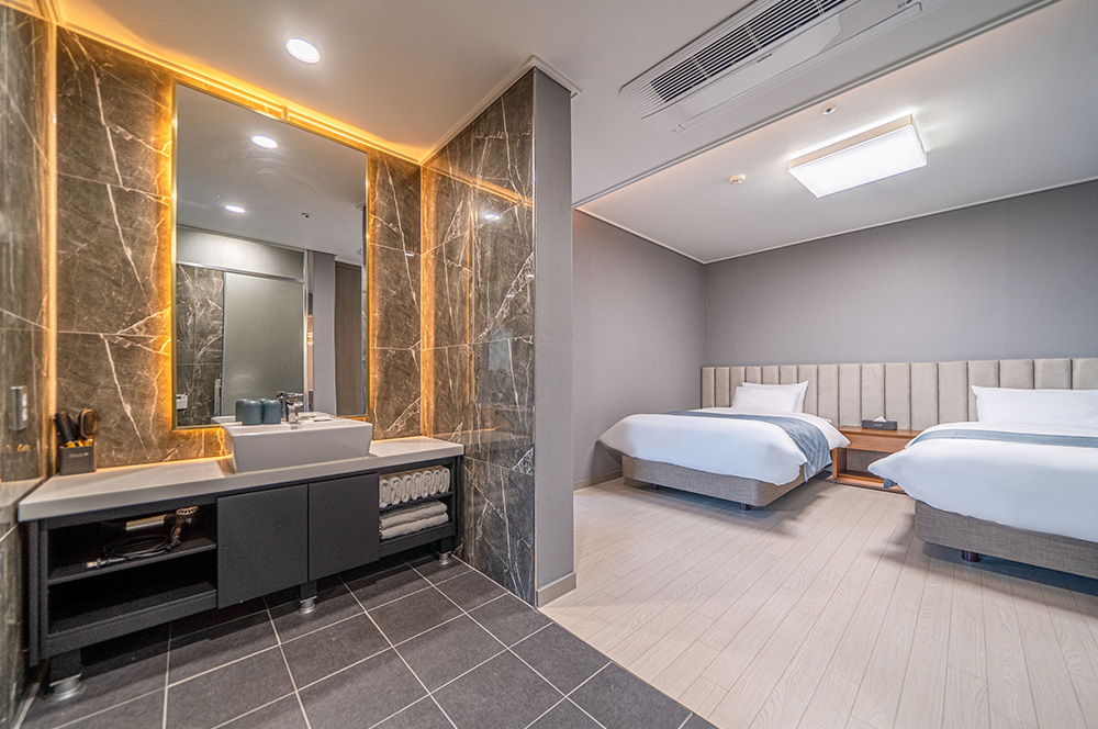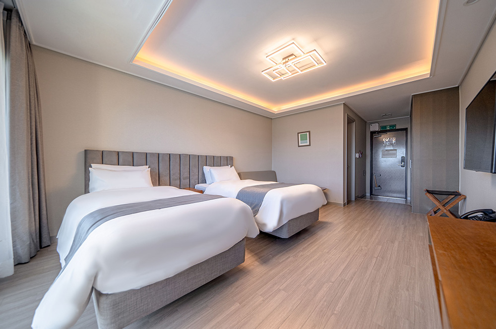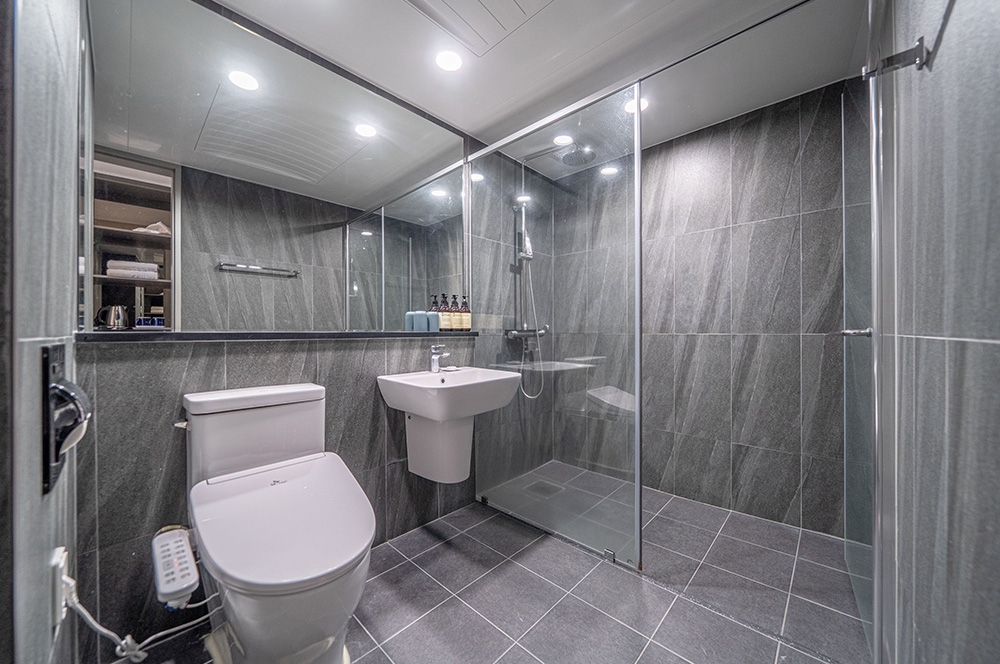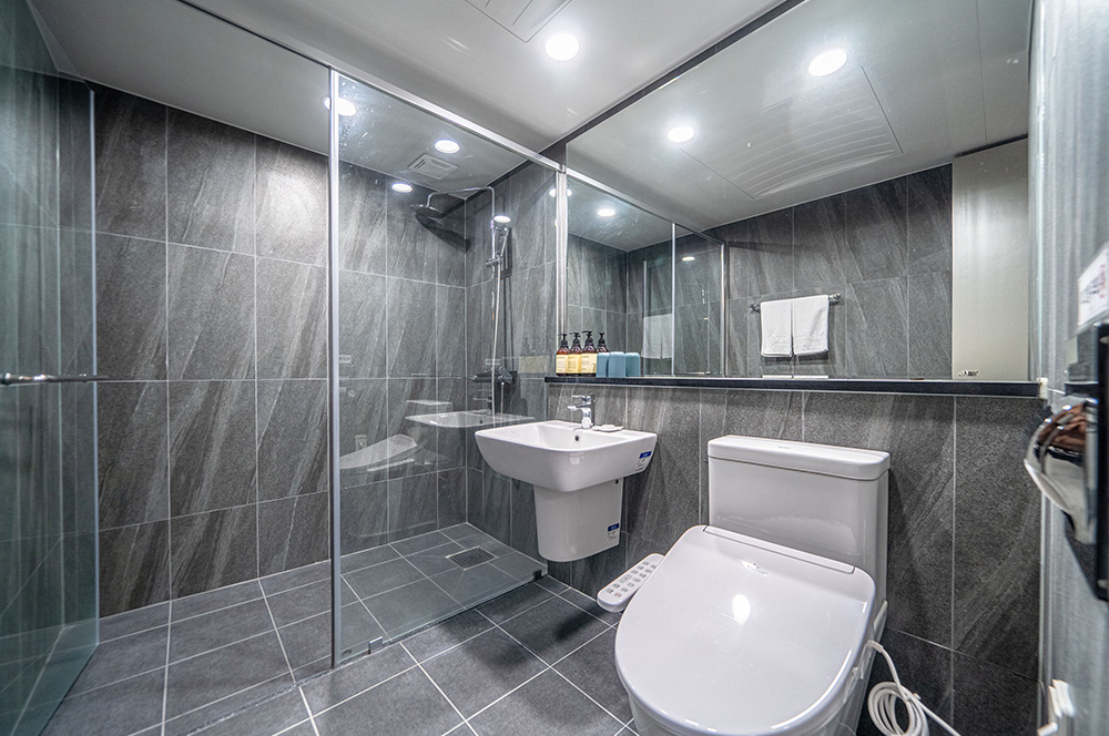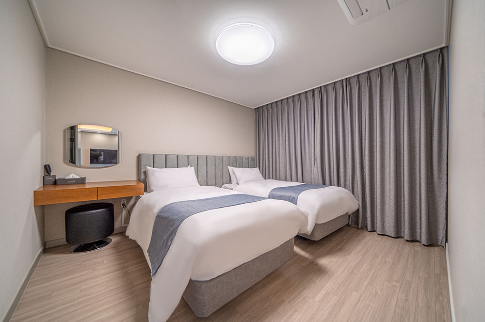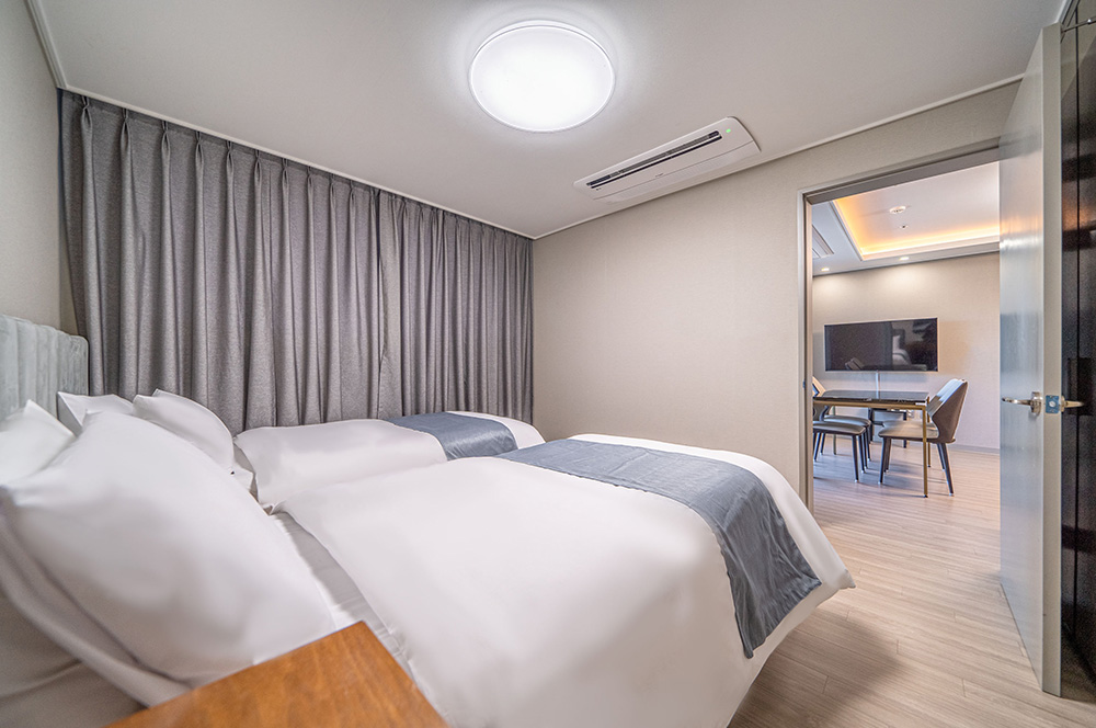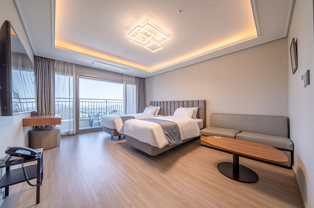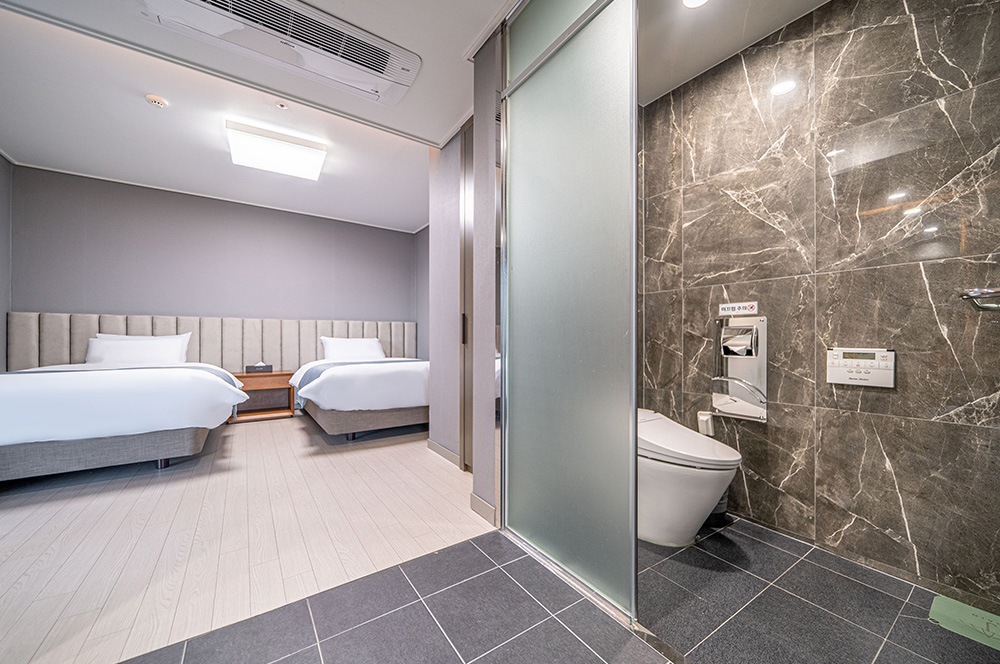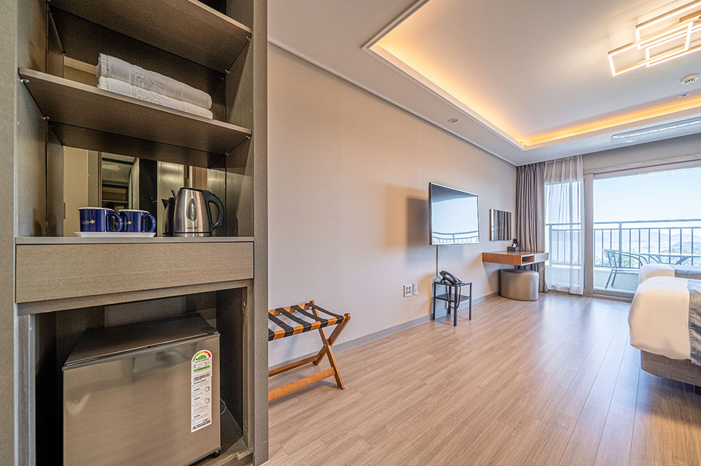 - 침실 & 거실: TV, 개별 냉난방, 전화기, 2인 소파, 옷장, 옷걸이, 러기지 랙, 화장대, 헤어드라이기, 빗, 전기포트, 냉장고, 컵, 볼펜