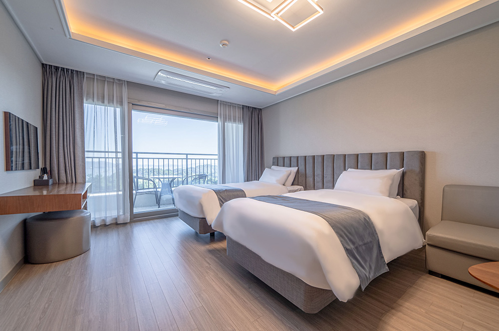 - 객실 구성: 침실 2 + 화장실 2 + 거실 1 + 베란다 1