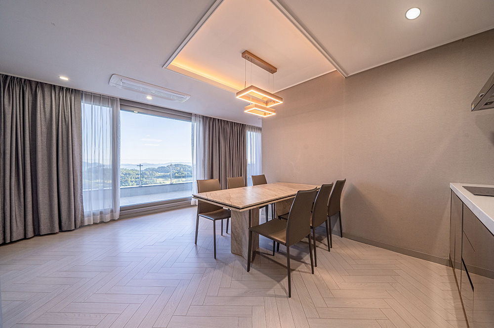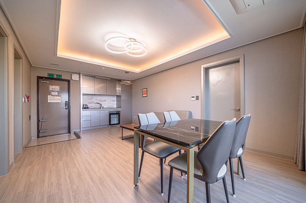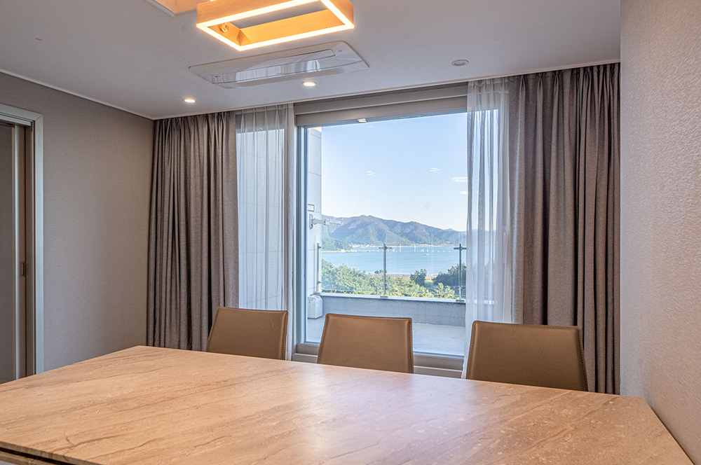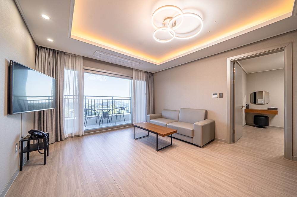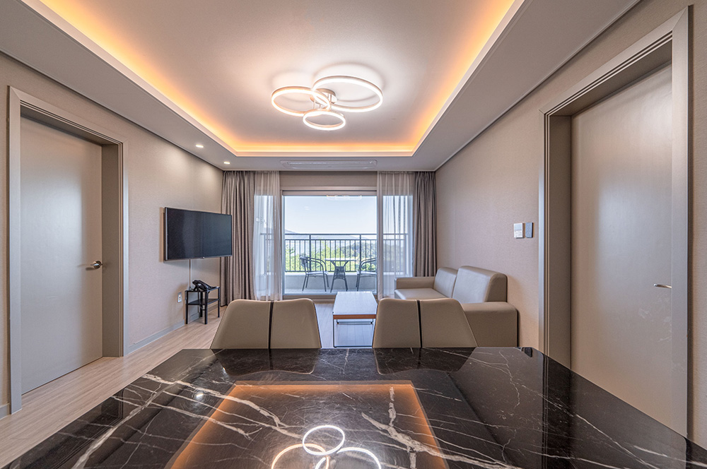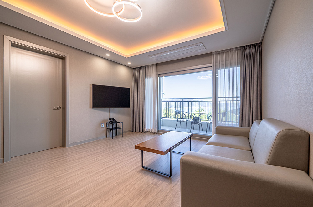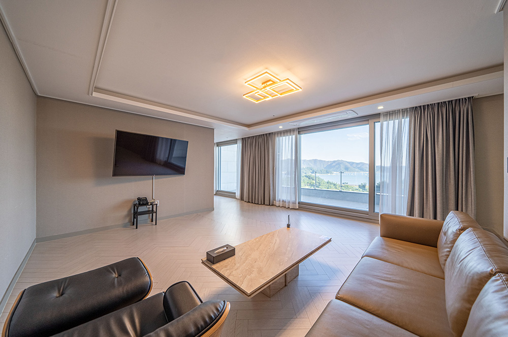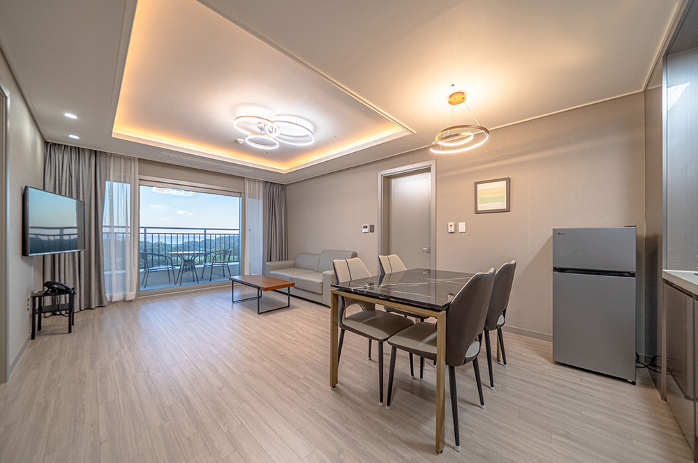 - 침실 & 거실: TV, 개별 냉난방, 전화기, 6인 소파, 쇼파 테이블, 6인 식탁세트, 옷장, 옷걸이, 릴렉스 체어, 화장대, 헤어드라이기, 빗, 전기포트, 냉장고, 컵, 볼펜