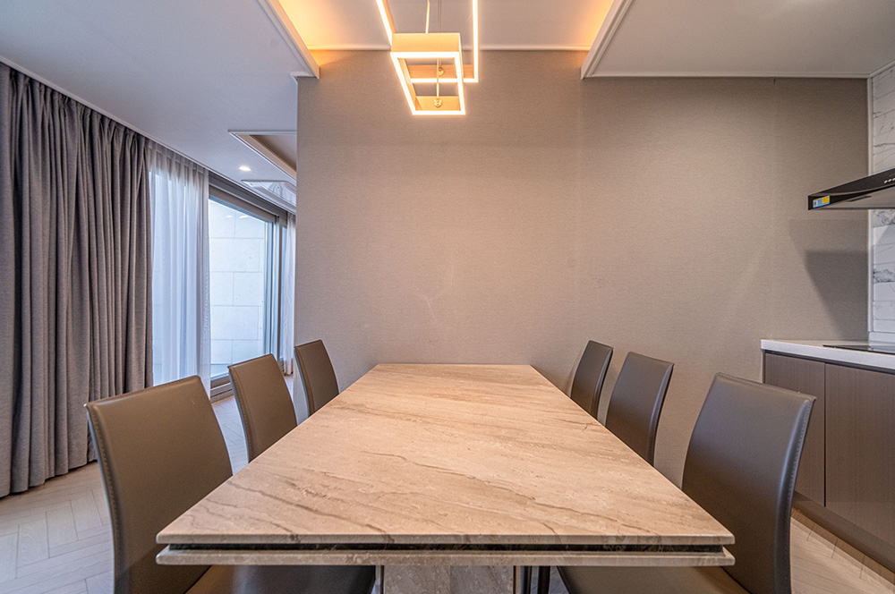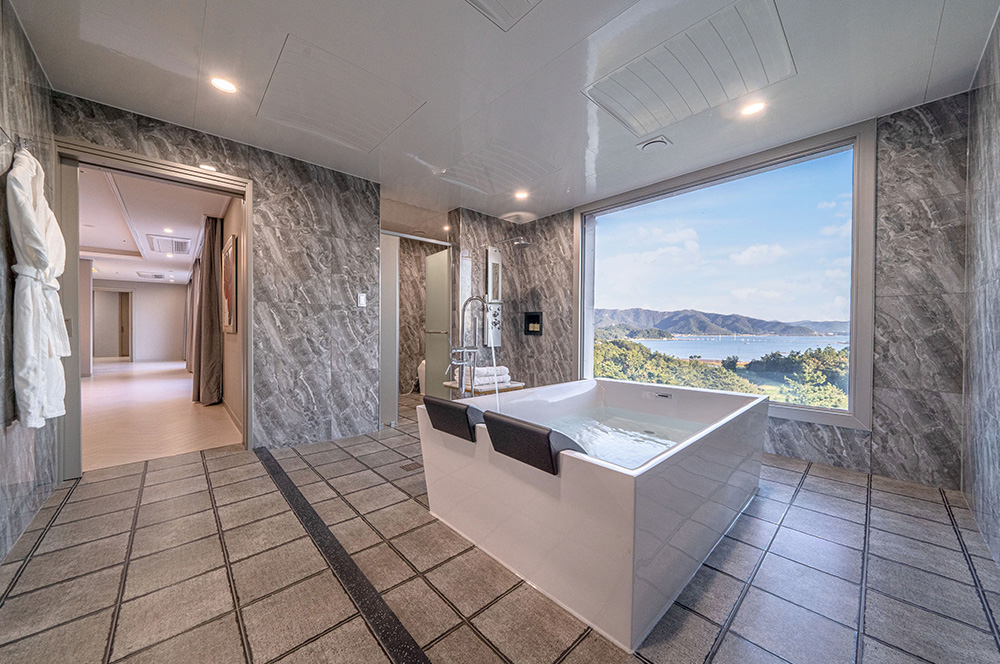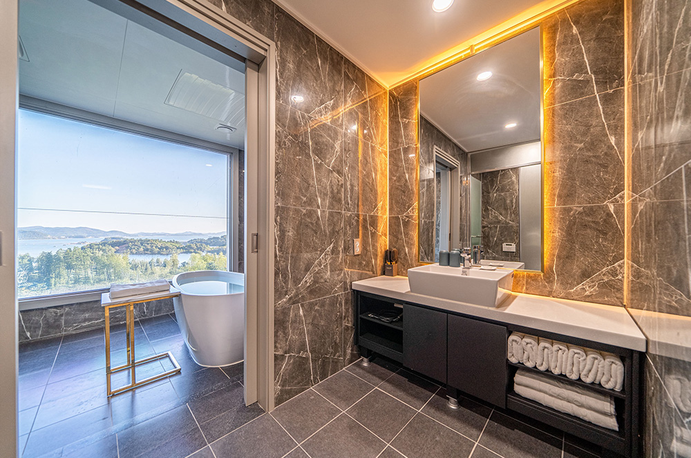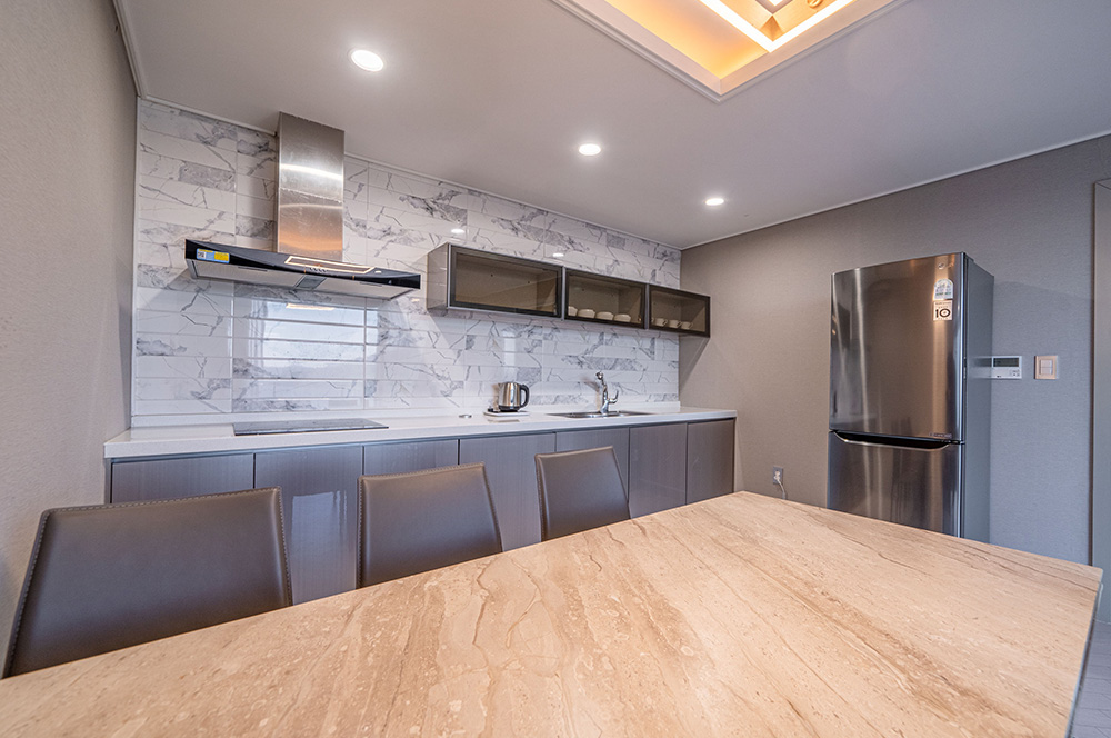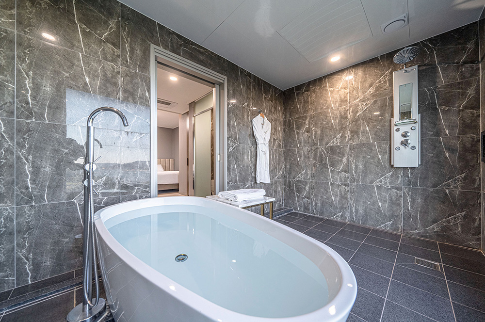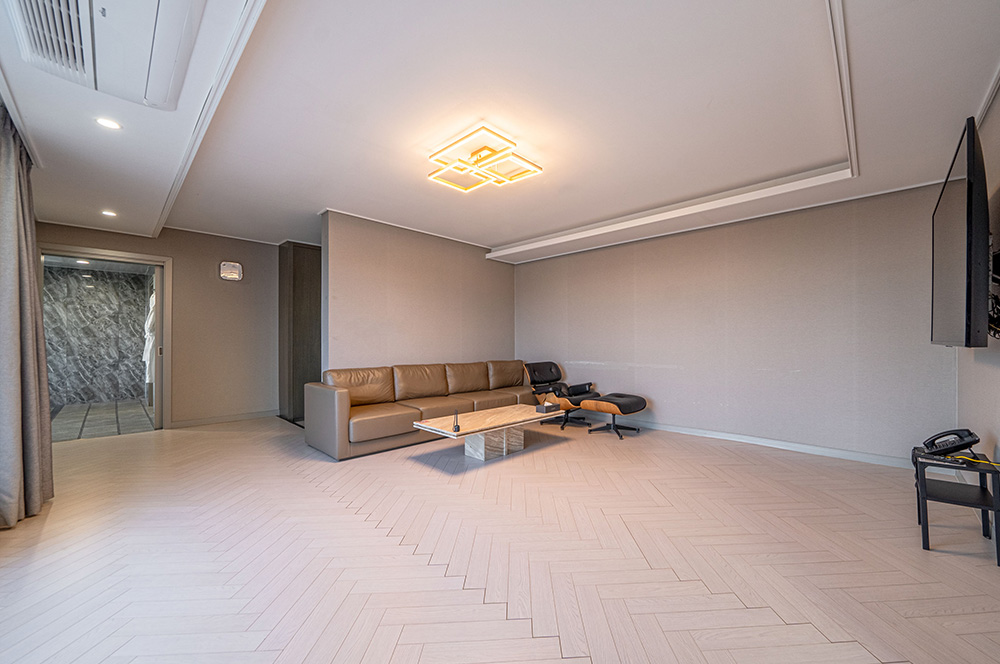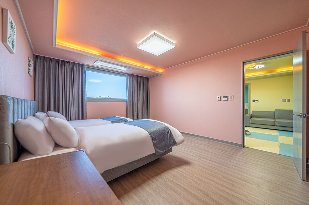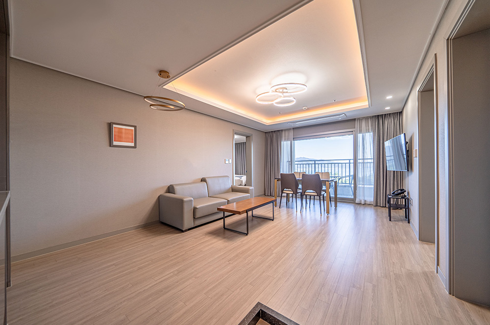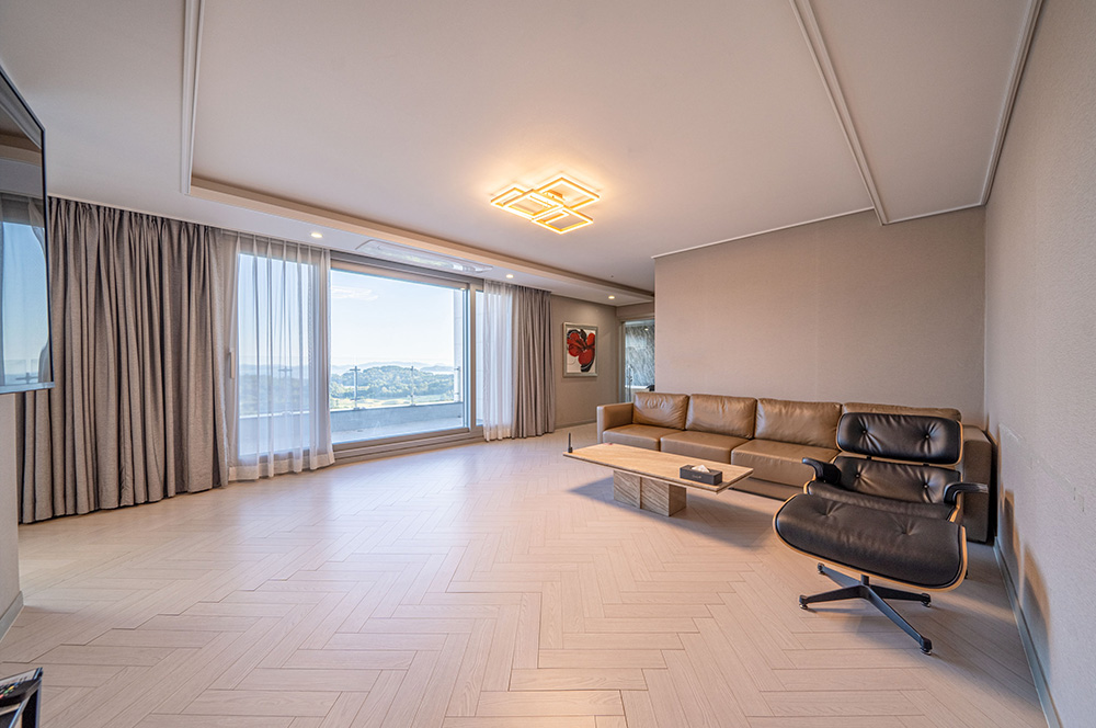 - 침실 & 거실: TV, 개별 냉난방, 전화기, 6인 소파, 쇼파 테이블, 6인 식탁세트, 옷장, 옷걸이, 릴렉스 체어, 화장대, 헤어드라이기, 빗, 전기포트, 냉장고, 컵, 볼펜