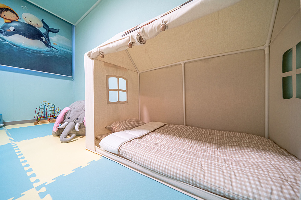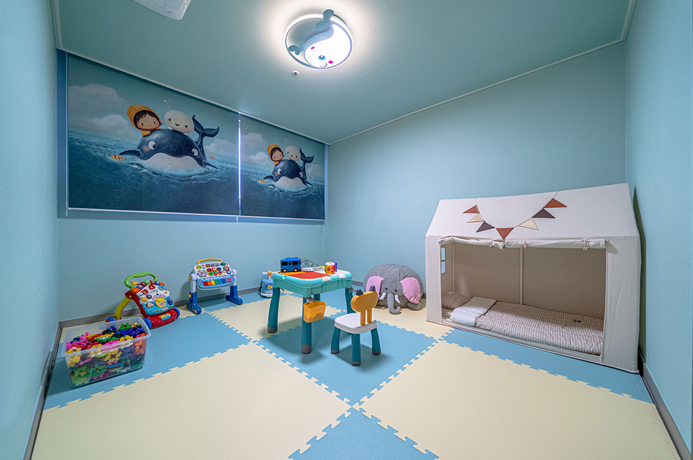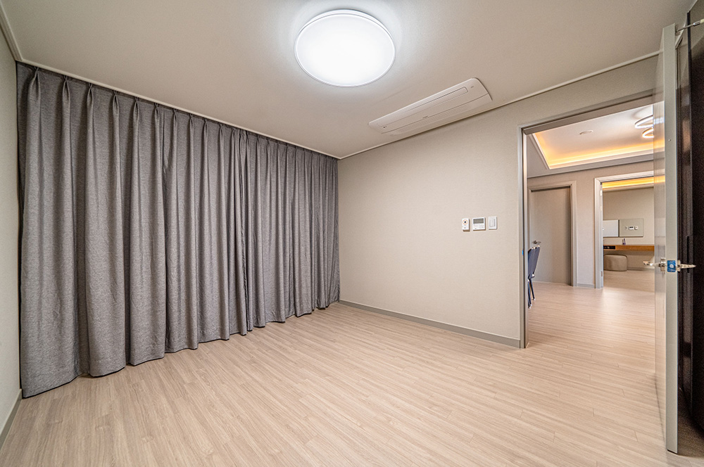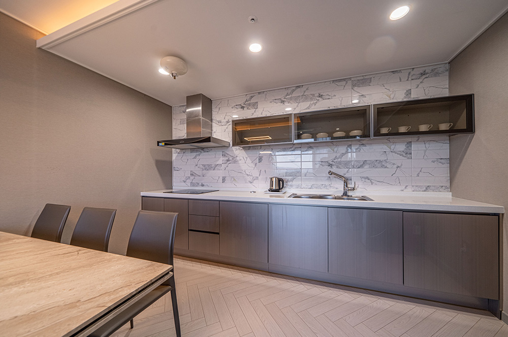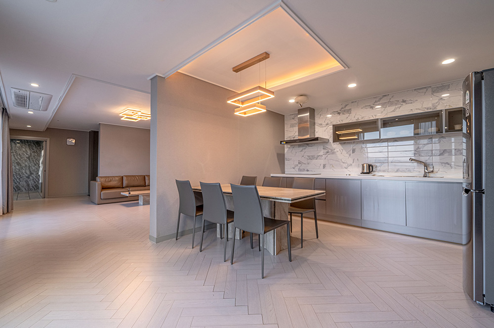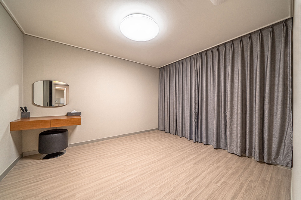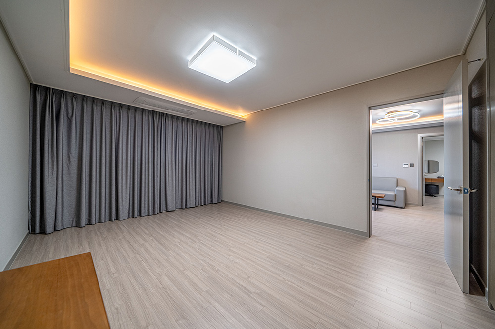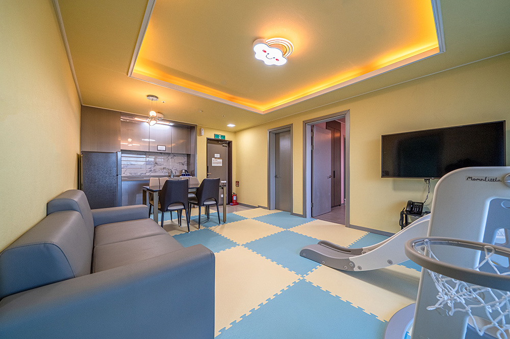 - 침실 & 거실: TV, 개별 냉난방, 전화기, 4인 소파, 쇼파 테이블, 4인 식탁세트, 옷장, 옷걸이, 화장대, 헤어드라이기, 빗, 전기포트, 냉장고, 컵, 볼펜